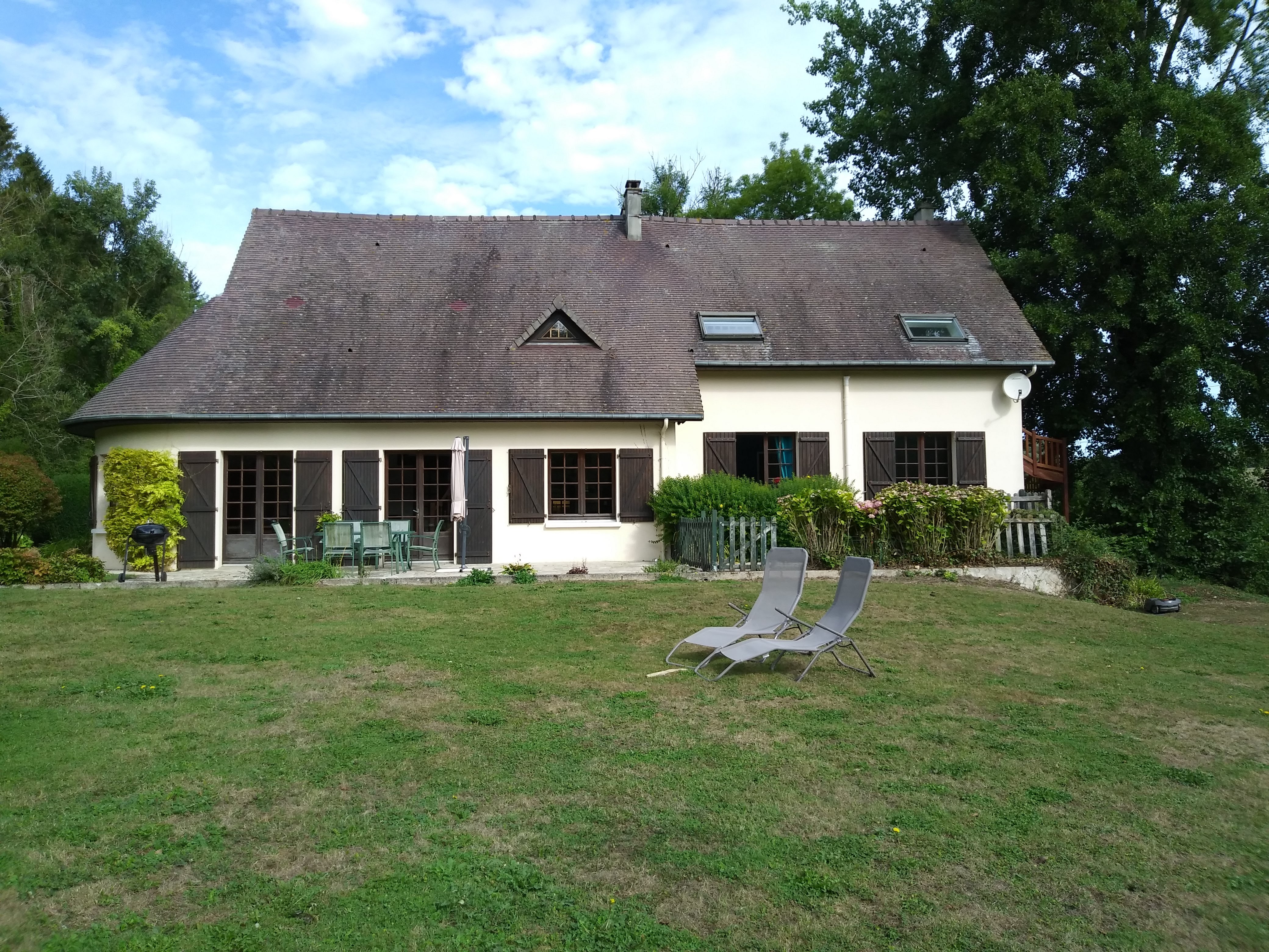 un endroit au calme et au milieu de la foret . un petit cour d'eau longe la maison. Le tous en fais un endroit charmant avec également un grand terrain très bien entretenu et idéale pour aire de jeu enfants.
