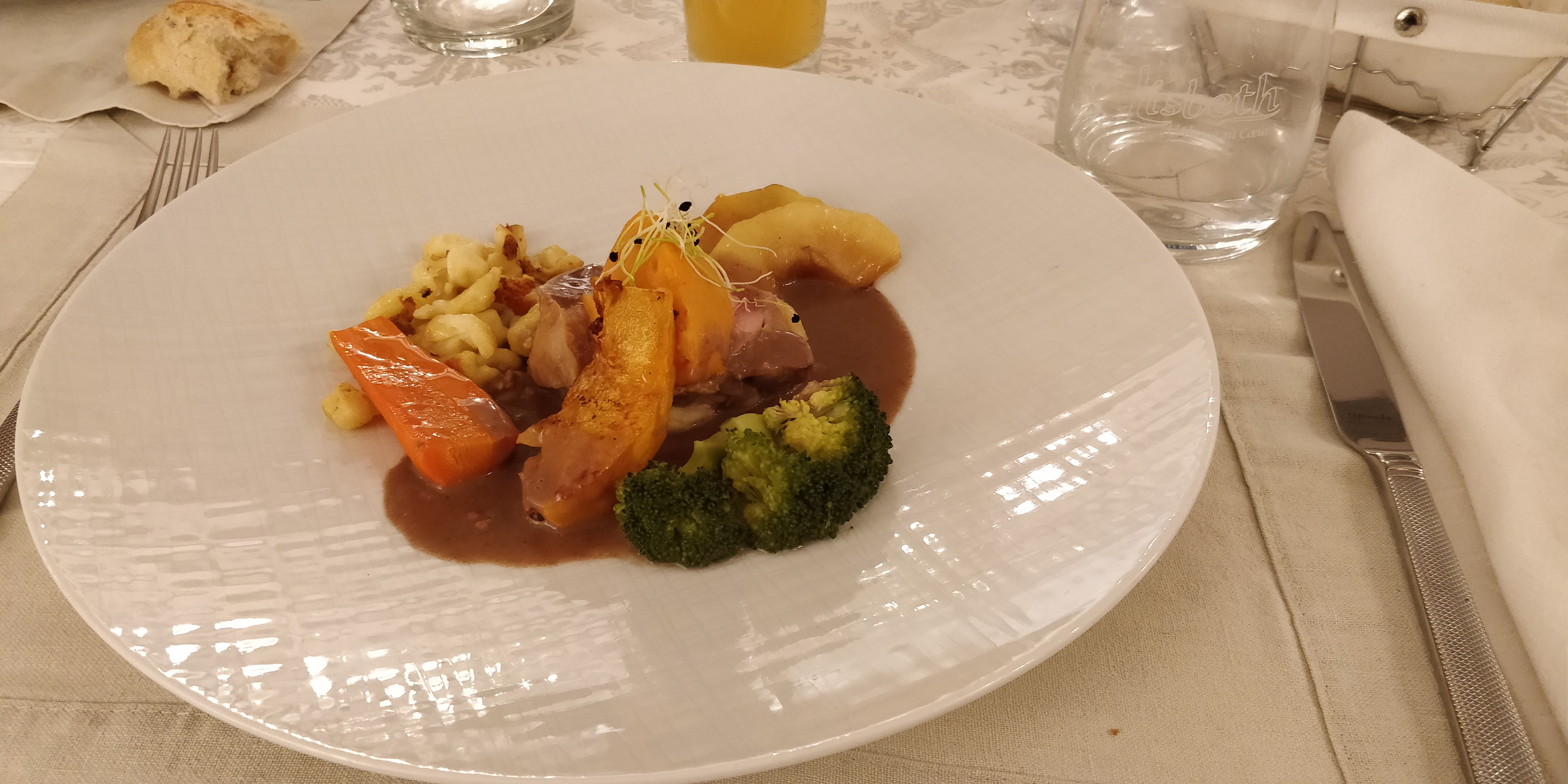 Le restaurant est très agréable, avec un salle traditionnelle et décorée avec goût. Le service était parfait et la cuisine excellente.
