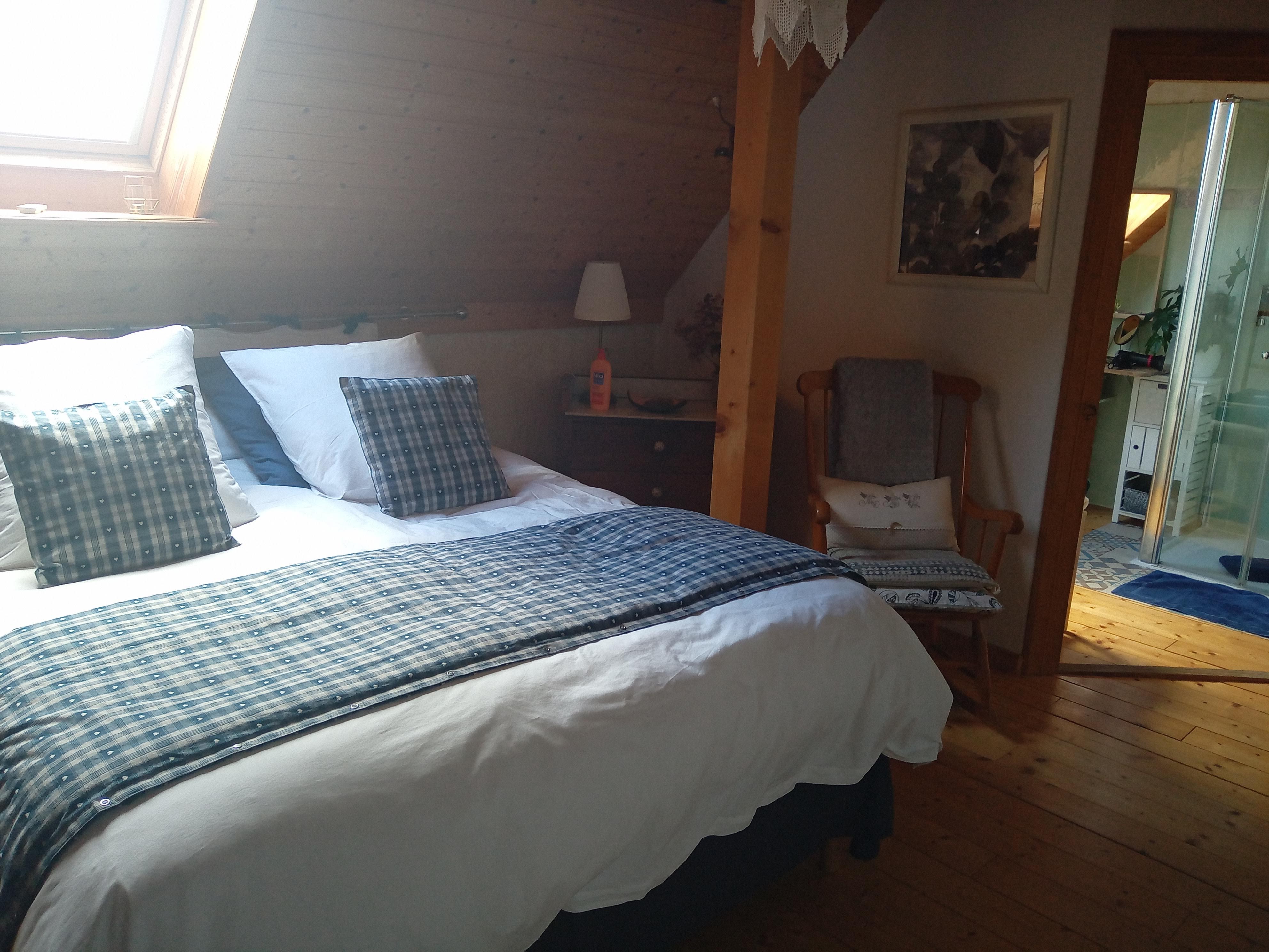 Chambre spacieuse, le calme du village, propriétaires chaleureux, un chien , un chat sympathiques. Un coq, des poules, vous passerez un agréable séjour à la campagne.