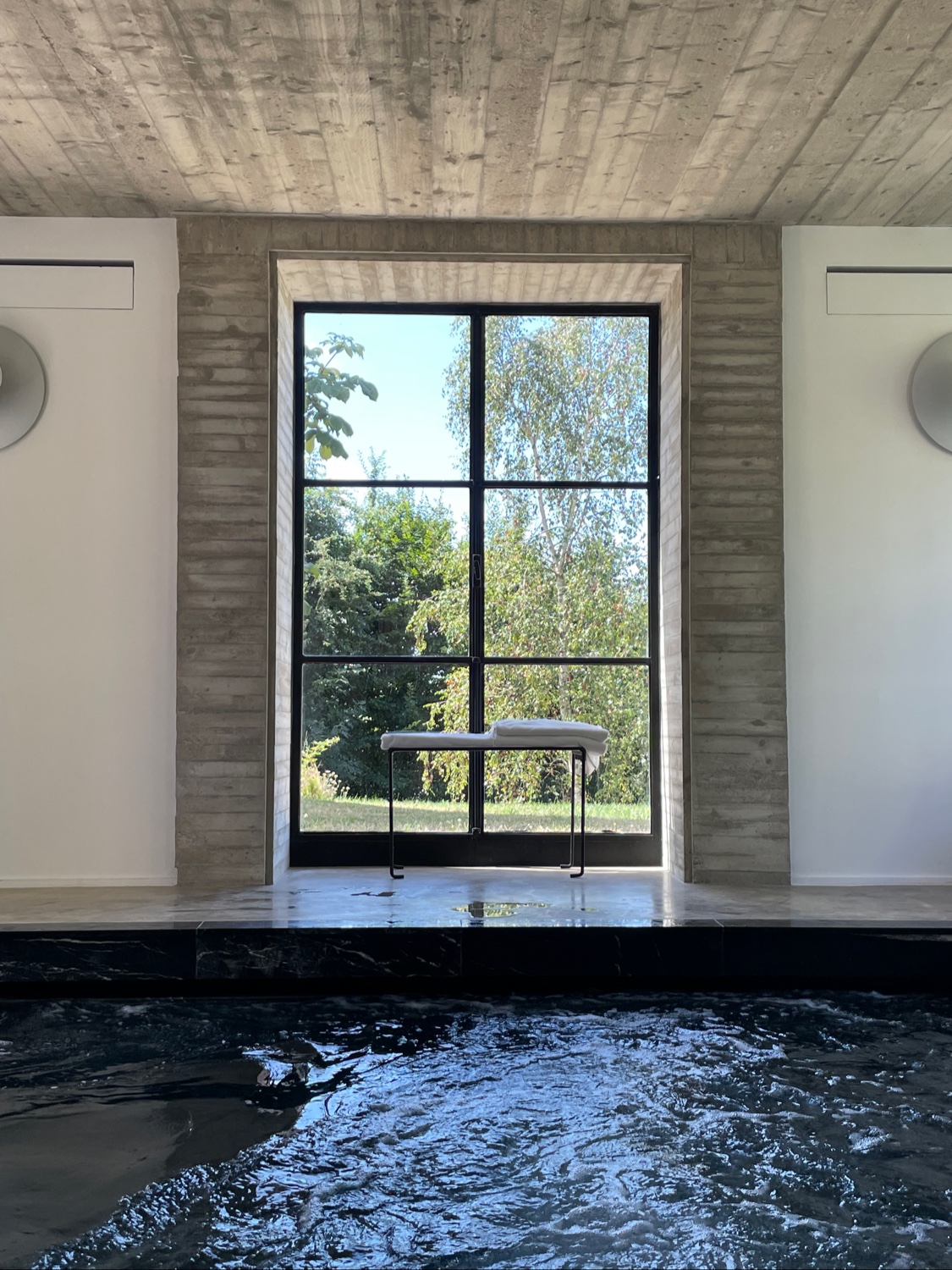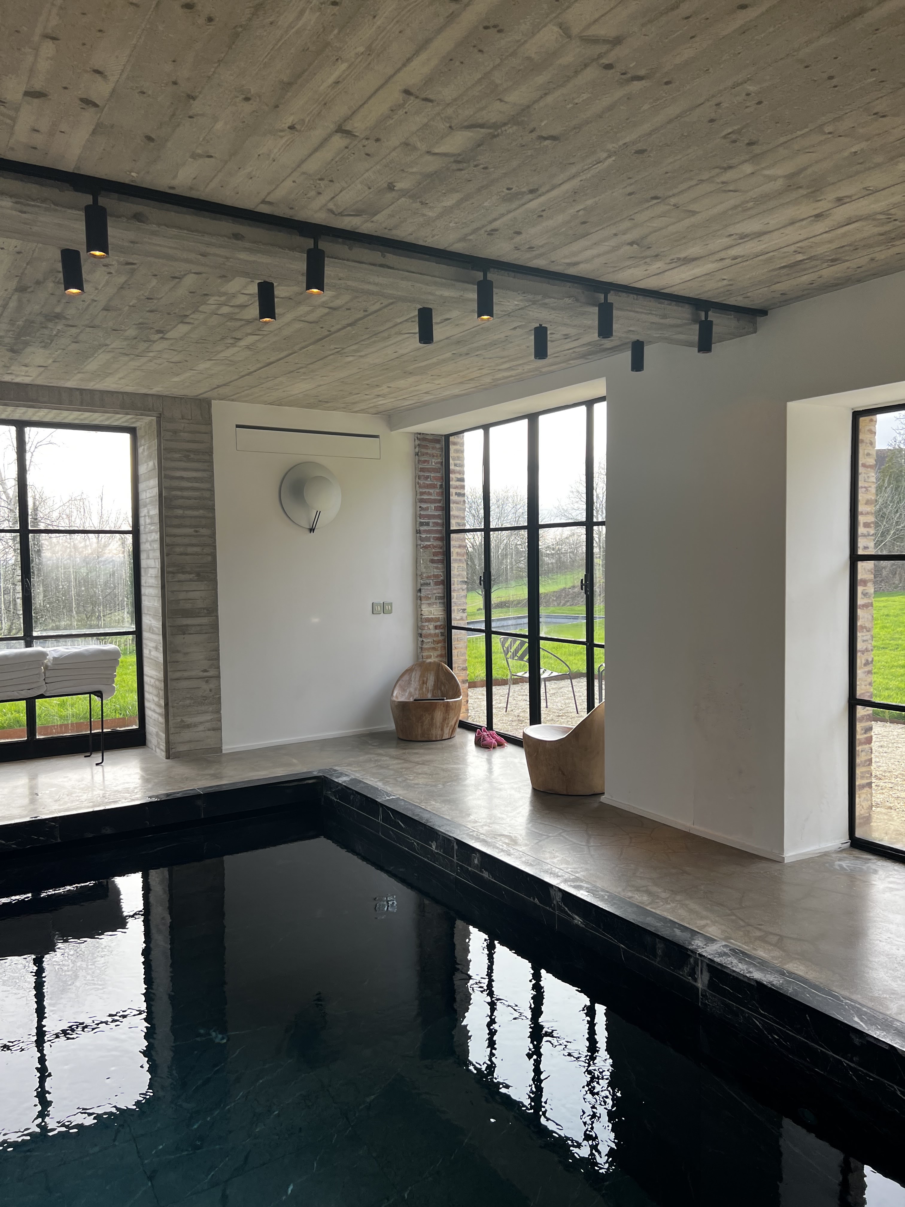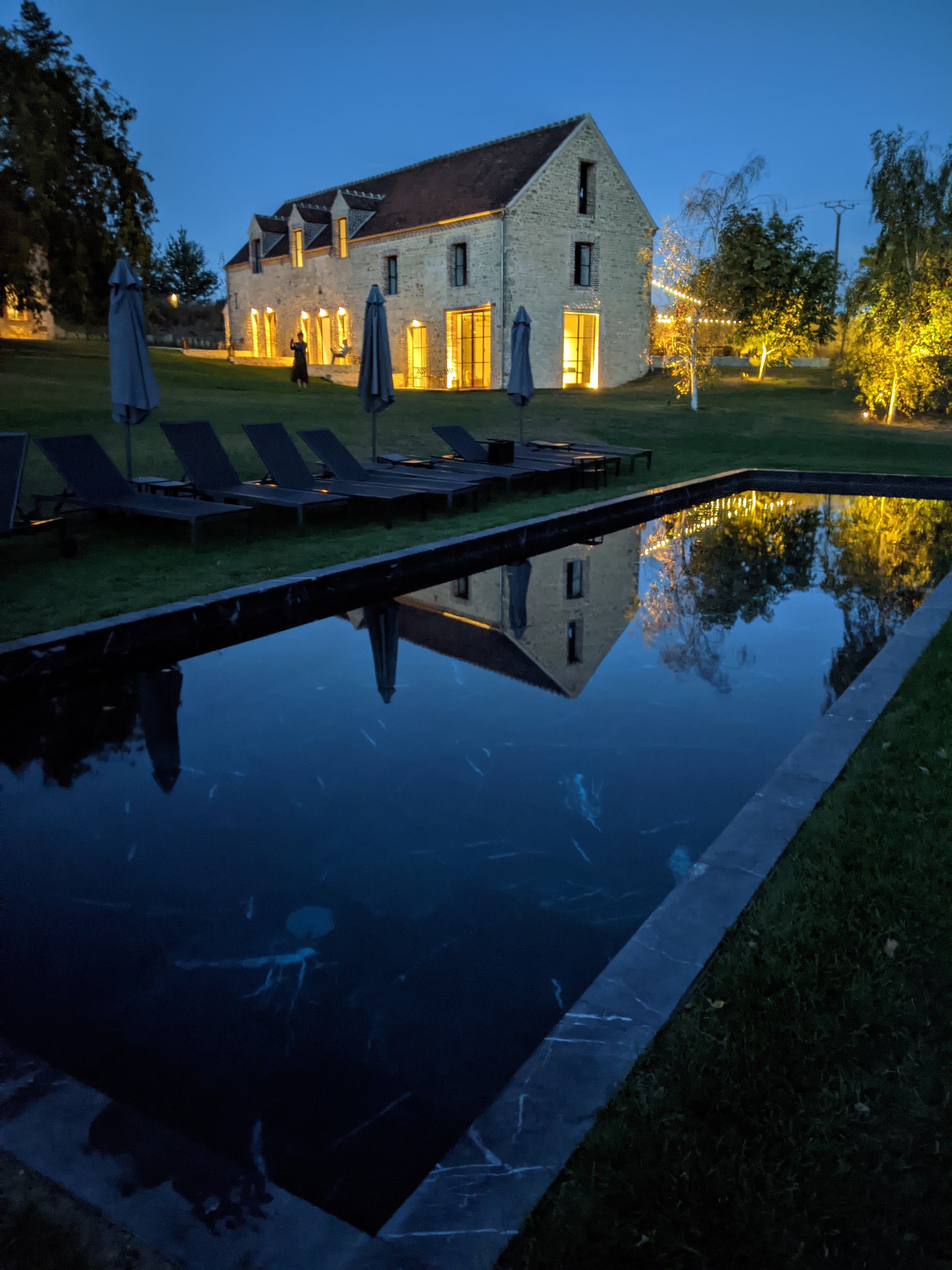 Nous n'étions là que pour le dîner et nous avons été ravis ! C’est un lieu magique conçu avec élégance et une subtile touche des années 70. La soirée était fraîche et nous étions assis à l'intérieur à côté de l'installation blanche. Le repas était très raffiné - Juliette Meyer. Nous avons ensuite eu droit à une visite des lieux. Chaque détail est artistique et attrayant, la piscine intérieure est superbe. La pelouse avec la piscine en marbre noir est spectaculaire. Un havre de luxe dans le Perche. Je reviendrai certainement.