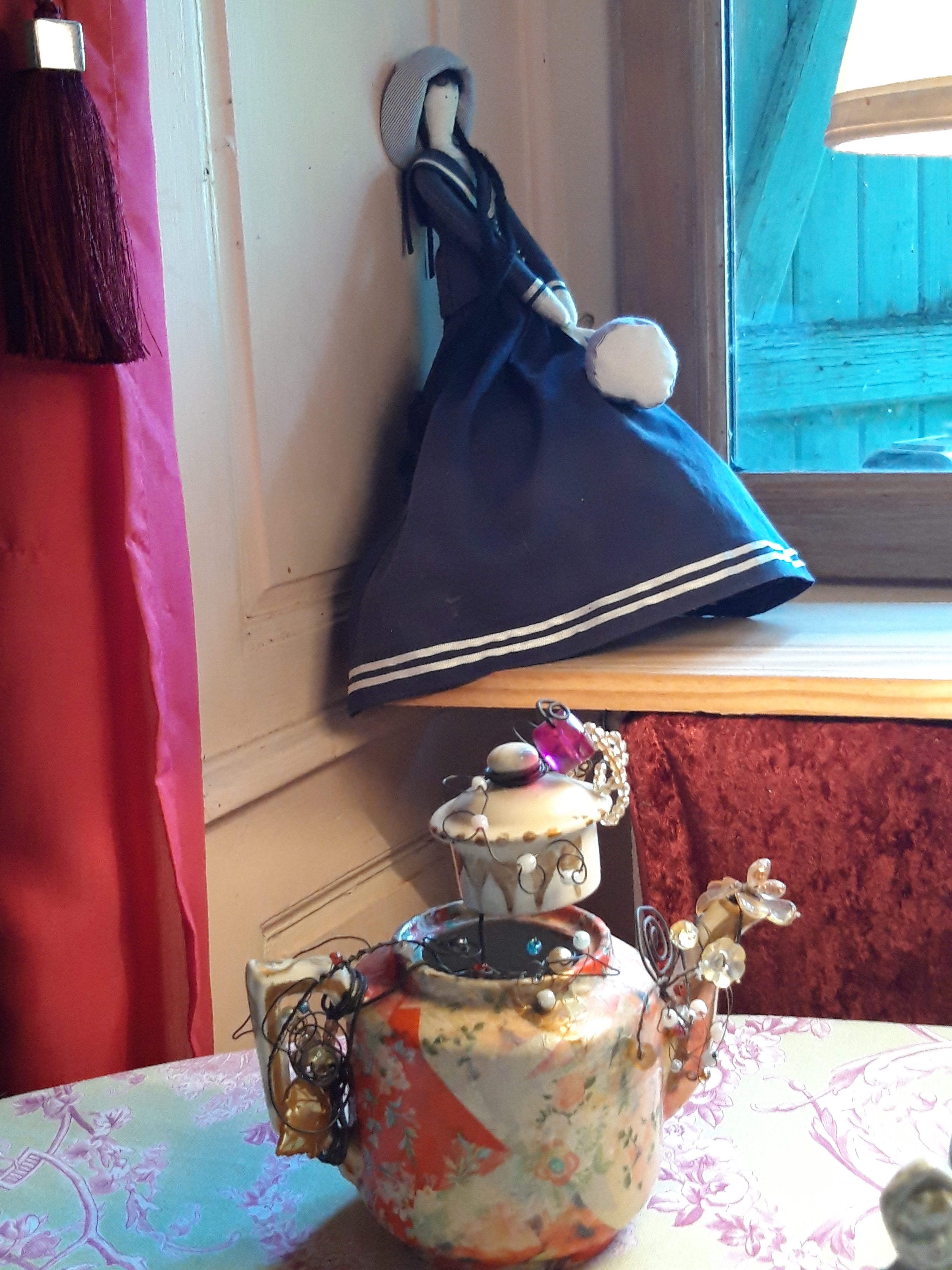 Vu les avis partagés, j’étais attentive en visitant la Maison Marthe. Saint Sauveur en Puisaye est une commune rurale, mais ce n'est pas vraiment la campagne car elle abrite quand même un peu plus de 4x le nombre d'habitants de notre village, et est bien plus touristique. Dans le doute, pensez décoration d'intérieur du 18ème siècle et soyez prêt à faire un voyage dans le temps. L’entrée se fait par le jardin plutôt bucolique, sous arches et feuillages. Le désordre organisé style jardin anglais remplace les plantes et fleurs par des objets décoratifs au reflet de vos hôtes. Passez la porte d'entrée vous serez accueillis dans le couloir avec grand sourire et convivialité. Petite visite de la salle prévue pour le petit-déjeuner et vous serez accompagné vers votre chambre. Prenez garde aux escaliers, et faites attention si vous avez un sac à dos. Nous avions réservé la chambre « Roulotte ». Ici, la propreté est digne de l'époque qu'elle reflète. Les araignées et les insectes ne survivent pas. La lumière artificielle éclaire toutes les étonnantes antiquités chinées au détour de mille et une brocantes. Attention à vos têtes si vous faites 1,70m ou plus, c’est une chambre dans les combles et le plafond ne surplombe la porte que de quelques centimètres. Au cas où, le « manuel » de la maison ne vous suffit pas de lecture, vous aurez loisir de découvrir une publication maison qui vous en racontera davantage sur vos hôtes. Si toutefois vous êtes excellent auditeur, laisser vous emporter par les histoires fabuleuses de la maison. Vous n’aurez pas besoin de demander deux fois. Le petit déjeuner est bien français avec petit pain boulanger, thé ou café, et jus d'orange à presser. Toutefois ; si votre bonheur se trouve dans la discipline et l’organisation, si vous êtes un peu maniaque et avide d’atmosphères épurées, aux parfums imperceptibles ; passez votre chemin.